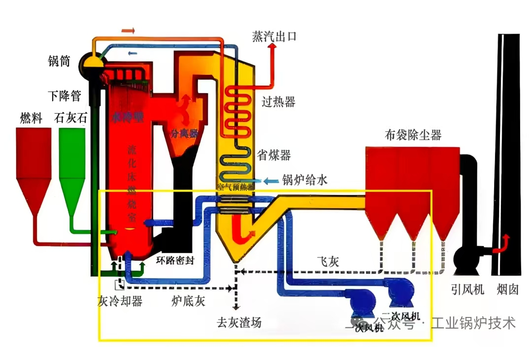 发表时间:2025-12-18 09:13 太原锅炉集团有限公司流化床知识讲堂——燃烧室篇 太原锅炉集团有限公司官网太原锅炉厂技术宣 循环流化床锅炉与燃煤粉的常规锅炉相比,除了燃烧部分外,其他部分的受热面结构和布置方式与常规煤粉炉大同小异,循环流化床锅炉的燃烧系统由燃烧室和布风板、飞灰分离装置、飞灰会送装置等组成,有的还配货外部流化床热交换器。